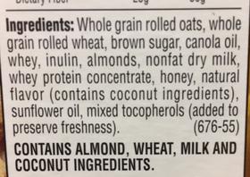 The "piece de resistance" is dry milk and whey protein. Really? Whey is a protein in dairy. Dairy protein is linked to cancer. Just two servings a day increases a man's risk of prostate cancer by 30%. That means if a man eats this granola with milk on top he increases his risk of prostate cancer by 30%. How much more does he increase his risk when he adds cheese to his sandwich at lunch, puts butter on his roll at dinner, and then eats ice cream for dessert? =O